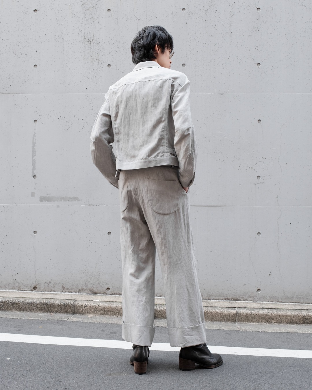 ジャケットもパンツも、どちらも細部にこだわりが光り、着る人を引き立てる。シンプルなのに、どこかオシャレな感じが漂うこのセットアップを、ぜひ手に取ってみてください。
