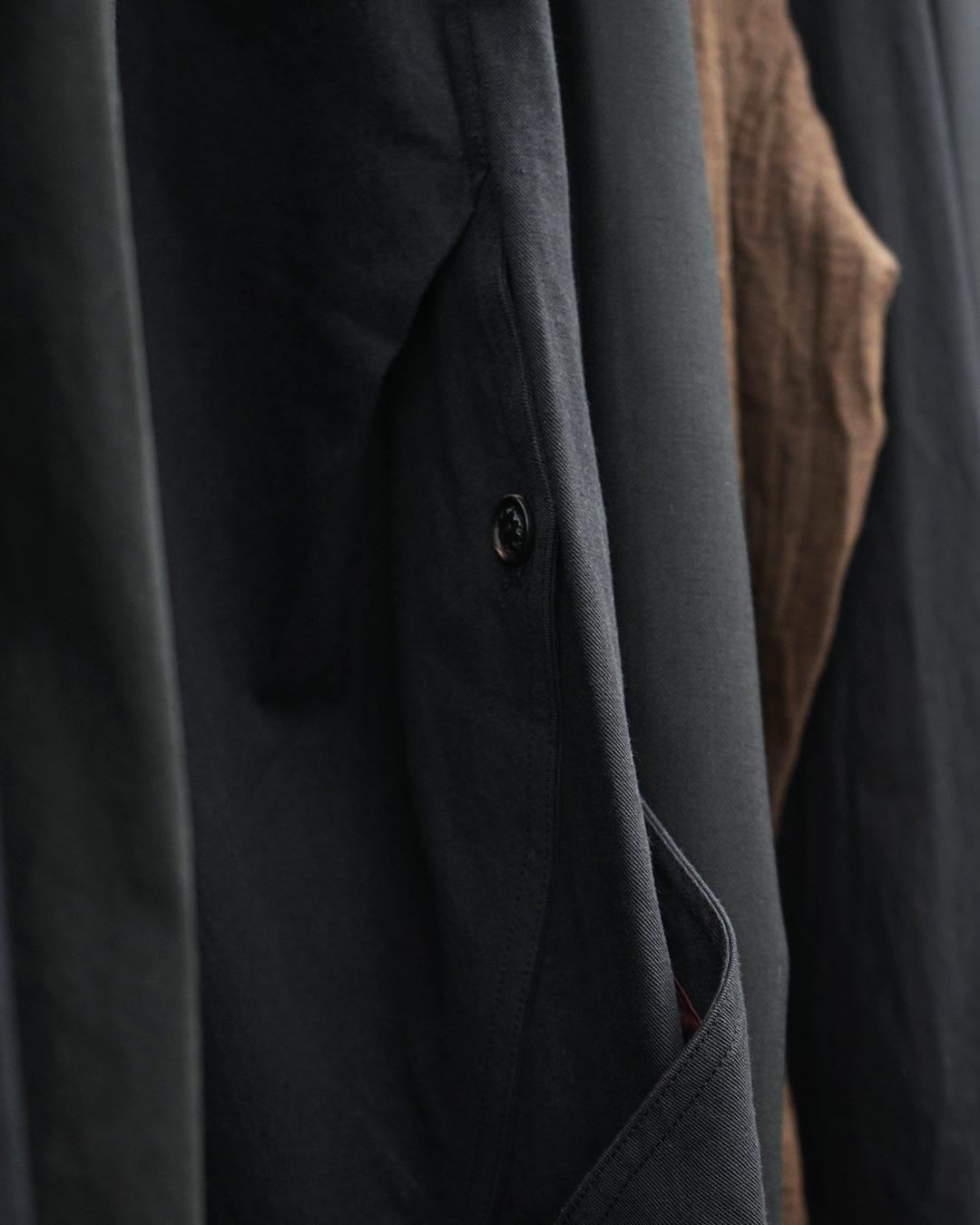 実際到着したのは現在レザージャケットの1ピースのみでございますが、おそらく来月末くらいに到着するであろう2nd deliveryにて大量に入荷することを予定しておりますので、ぜひ皆様楽しみにしていただきたい。いや、まずはこの本ラインの方ですね。今回おもに到着したのは、ジャケット、シャツ、そしてパンツ、さらにウィメンズラインではスカートも入荷し、性別問わずお楽しみいただけるラインナップとなっております。