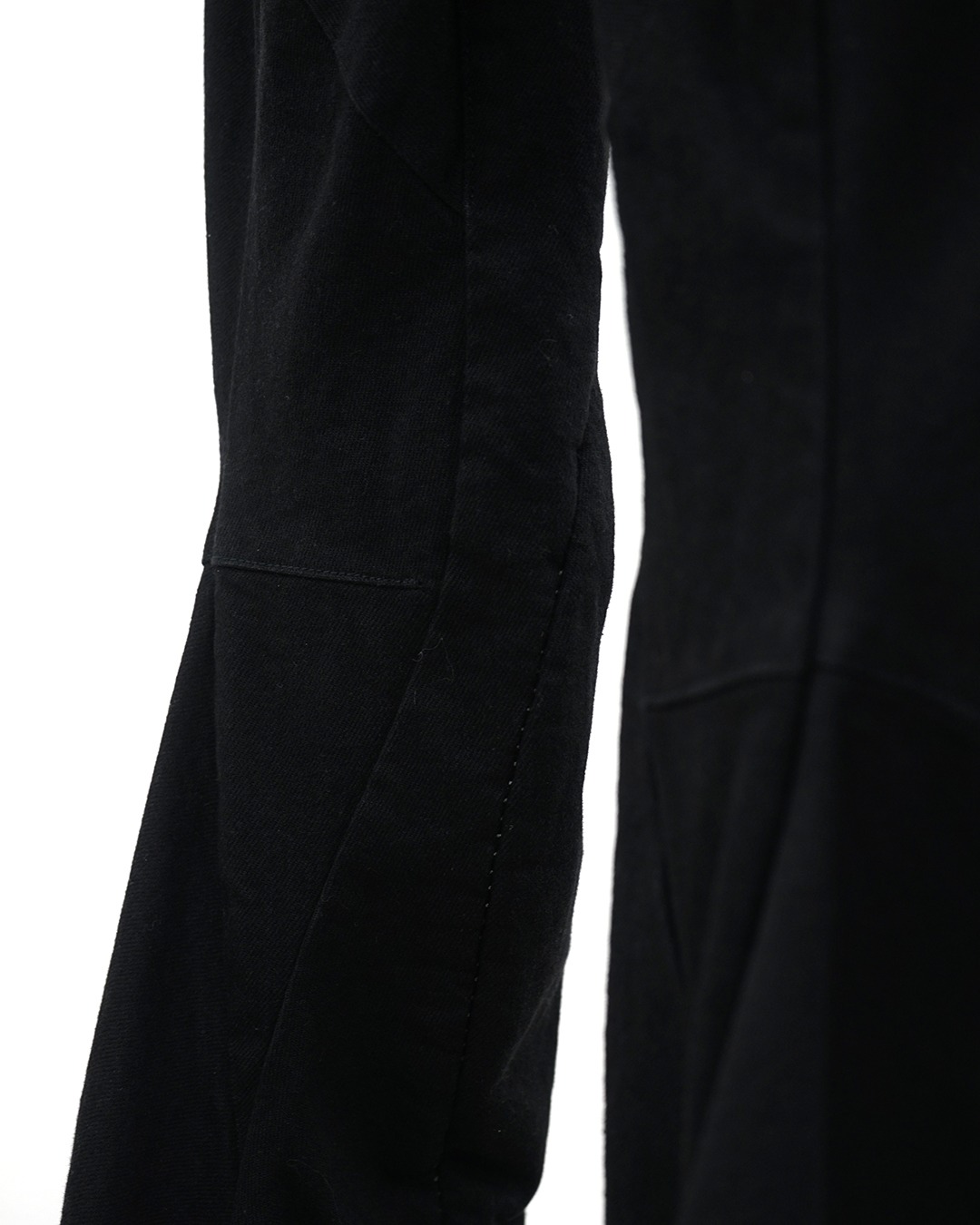 まずは1本目。これはもう紹介は不要なのではないかと思うほど、当店ではご案内させていただいたのではないかと思っております。このブランドのシグネチャーと言っても過言ではありません。いろんなジャンルのアルチザンを齧っている方でも「なんだかんだ結局これ」と落ち着くようなアイテムでもあります。複雑なパターンから構成されたシルエットが唯一無二の仕上がりを実現している。普段よく「ラックにかかっているだけでは何がカッコ良いのかわからない」アイテムたちをご案内させていただいておりますが、このパンツに関してはカッコよくないどころかむしろダサいのではとすら思う方がいてもおかしくないと思っている。