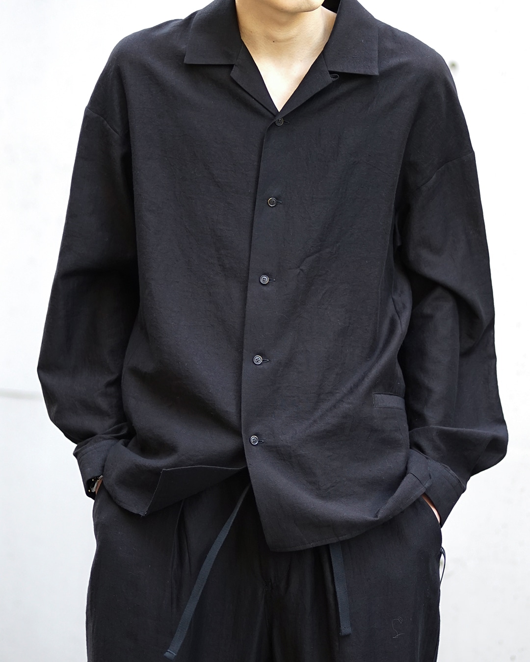 長岡はこれまで開襟のシャツは正直そこまで好みのものっていうのはあまりなかったのですが、このシャツに関してはむしろ開襟である必要があると思っているくらい、この形が一番美しいと思っております。
