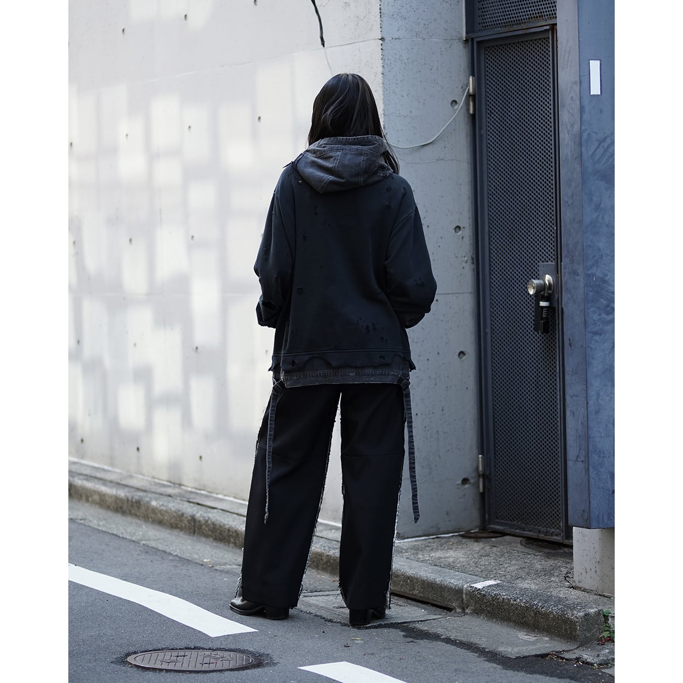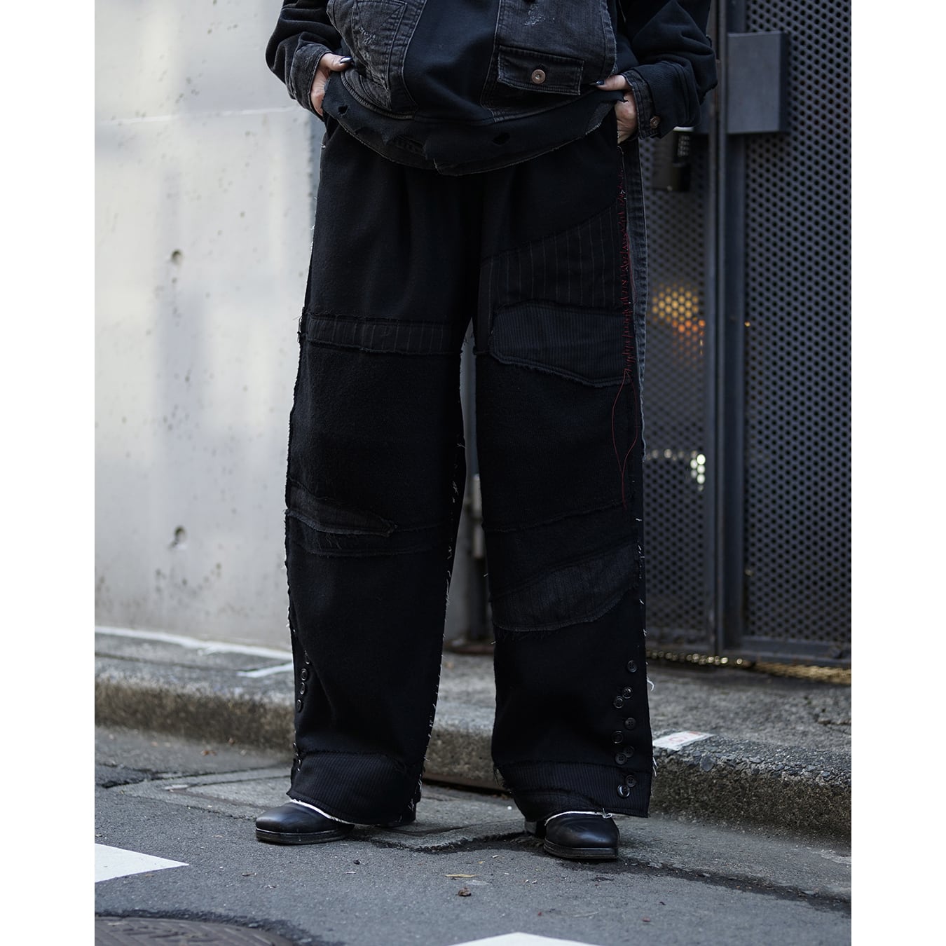 PATCHED WIDE PANTS (BLACK×RED STITCH)