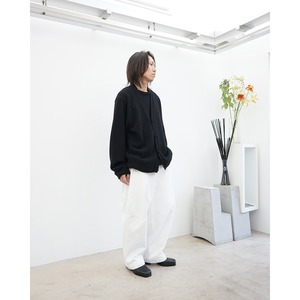 上質なアルパカニットのアンサンブル風のデザインです。袖口のミリ単位のズレや裾の重なりなどレイヤード感を忠実に再現。同色、同素材の包みボタンを採用し、ワントーンでミニマルなデザインです。