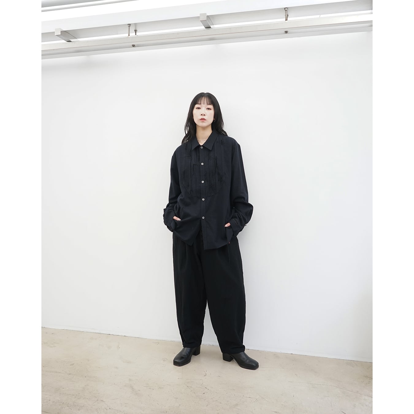 We offerings underscore a strong connection with traditional origins while exploring innovative sewing and construction techniques. Featuring deconstructed tailoring, lightweight linen jackets, relaxed-fit trousers, elongated shirts, and minimalist t-shirts are rendered in thoughtfully-sourced textiles, subdued earthy tones, and singular finishings.