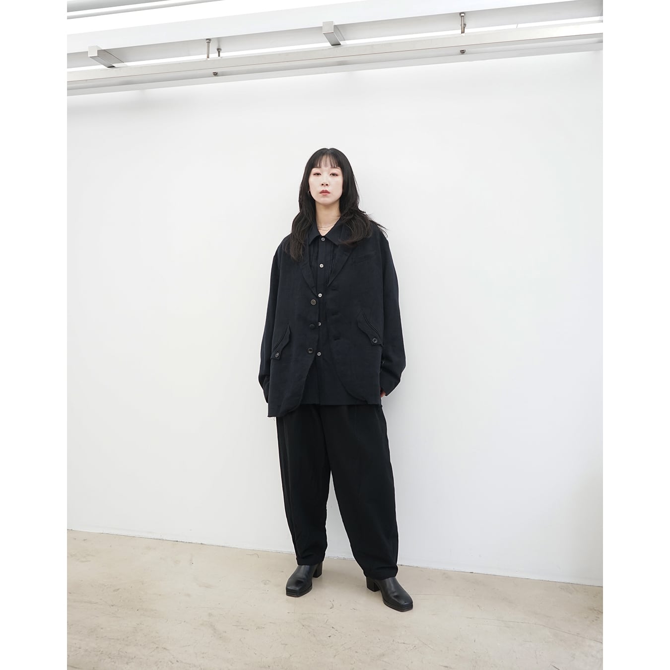 We offerings underscore a strong connection with traditional origins while exploring innovative sewing and construction techniques. Featuring deconstructed tailoring, lightweight linen jackets, relaxed-fit trousers, elongated shirts, and minimalist t-shirts are rendered in thoughtfully-sourced textiles, subdued earthy tones, and singular finishings.