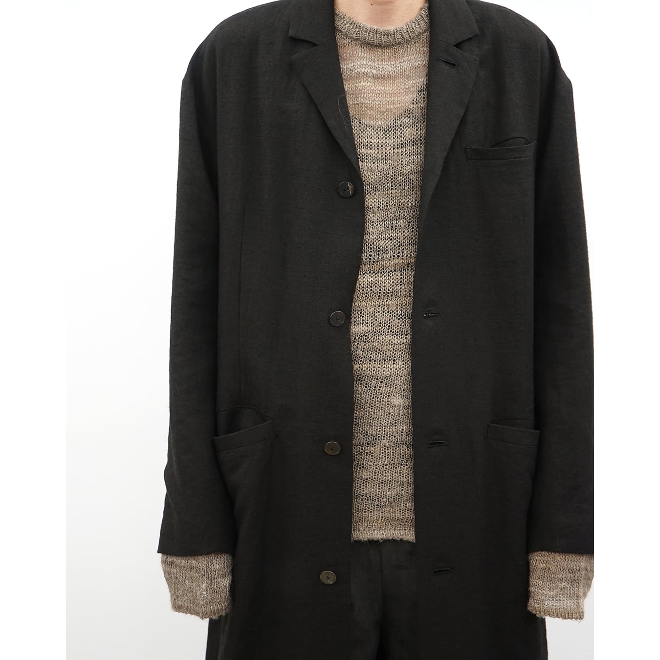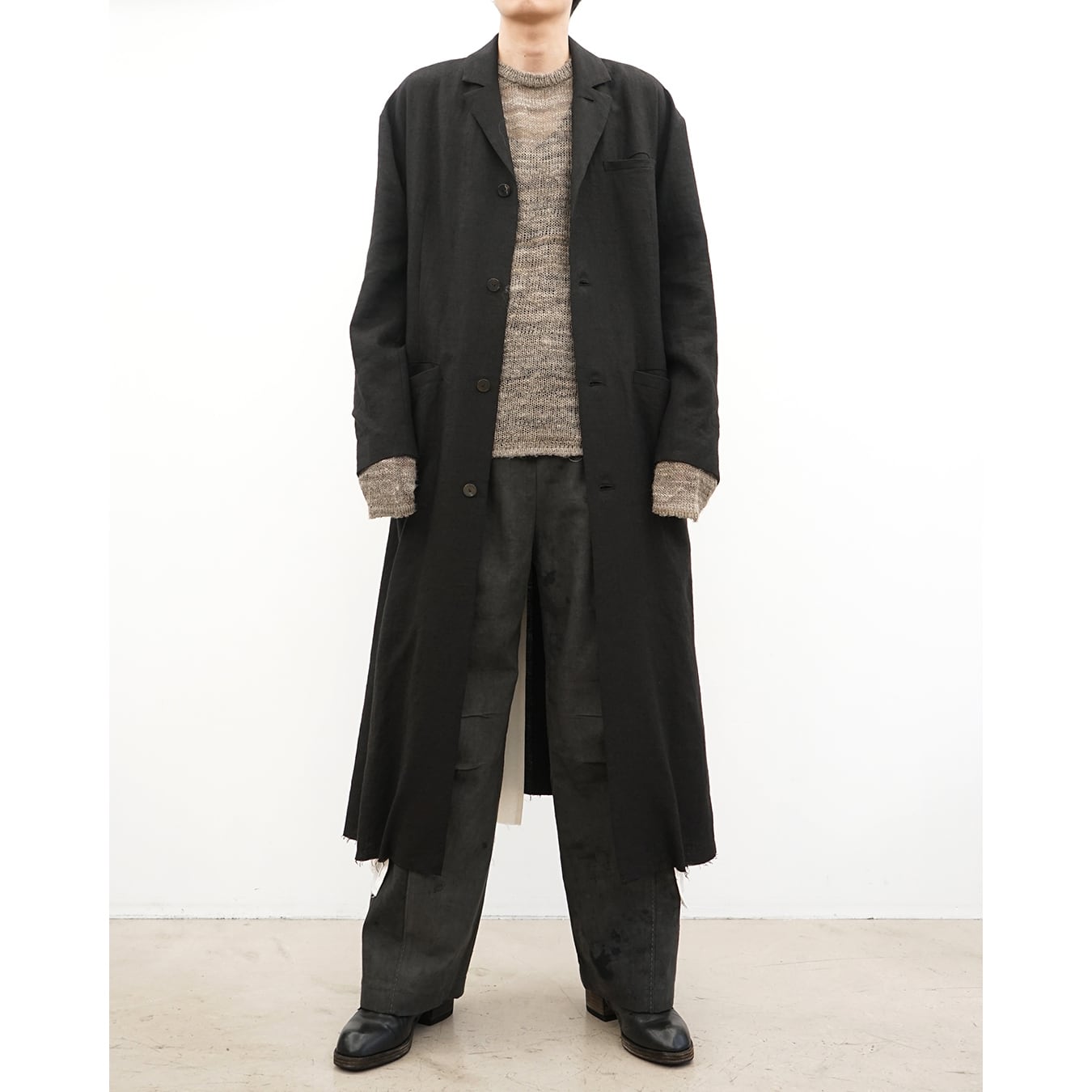 We offerings underscore a strong connection with traditional origins while exploring innovative sewing and construction techniques. Featuring deconstructed tailoring, lightweight linen jackets, relaxed-fit trousers, elongated shirts, and minimalist t-shirts are rendered in thoughtfully-sourced textiles, subdued earthy tones, and singular finishings.