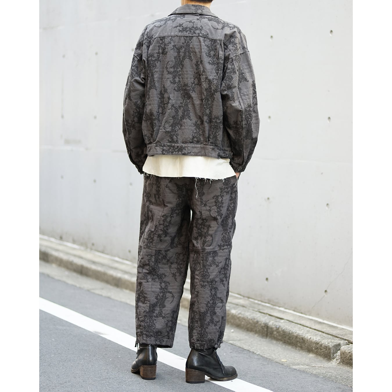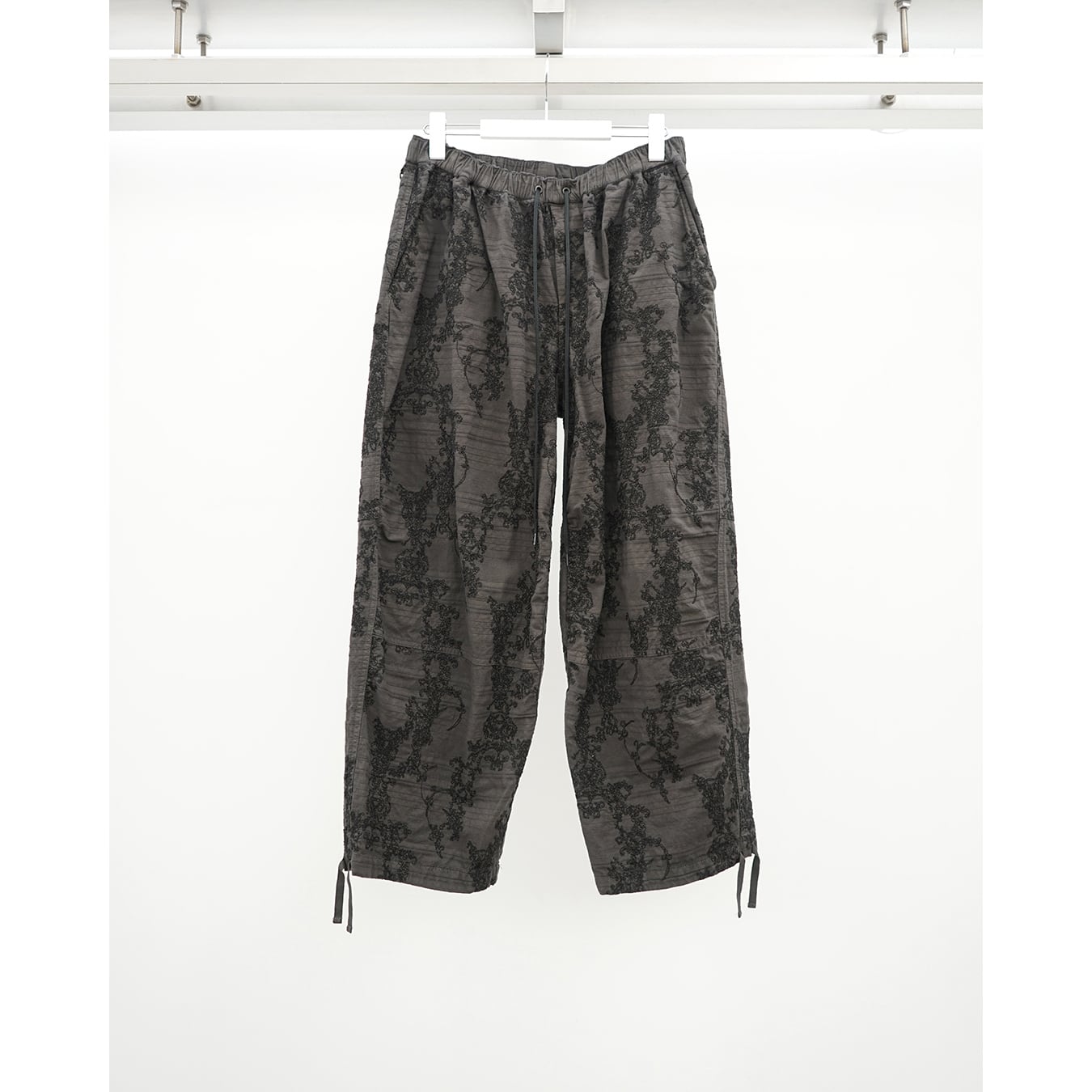 [The Viridi-anne] (ザヴィリディアン) VI-3965-04 EMBROIDERED RELAXED CROPPED TROUSERS (GREY/KHAKI)
