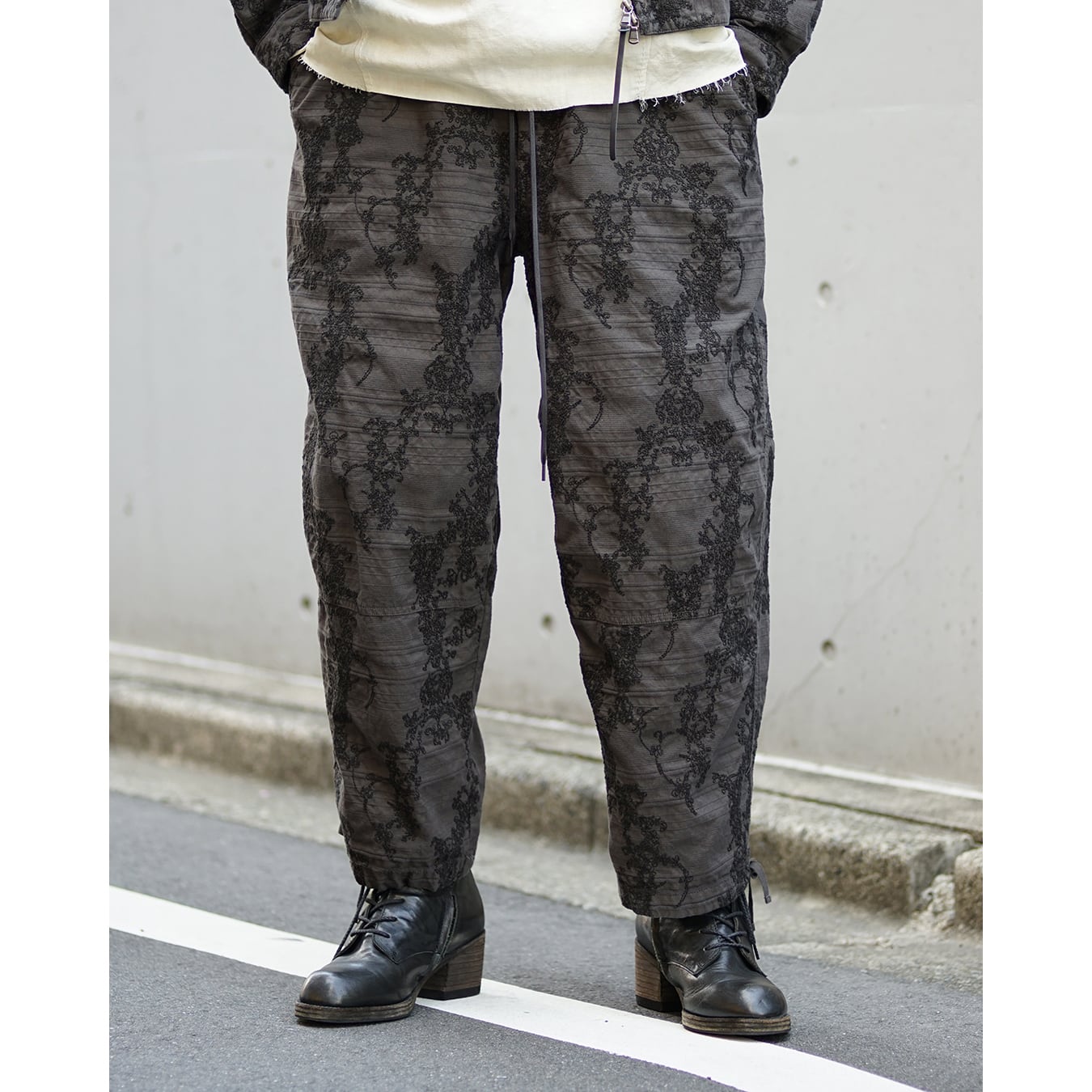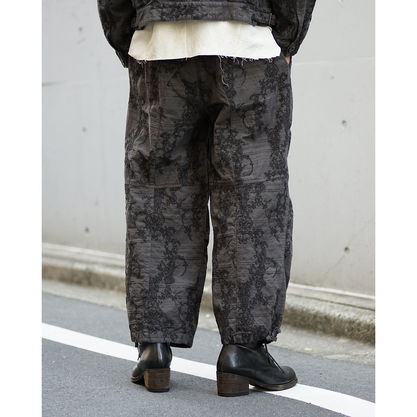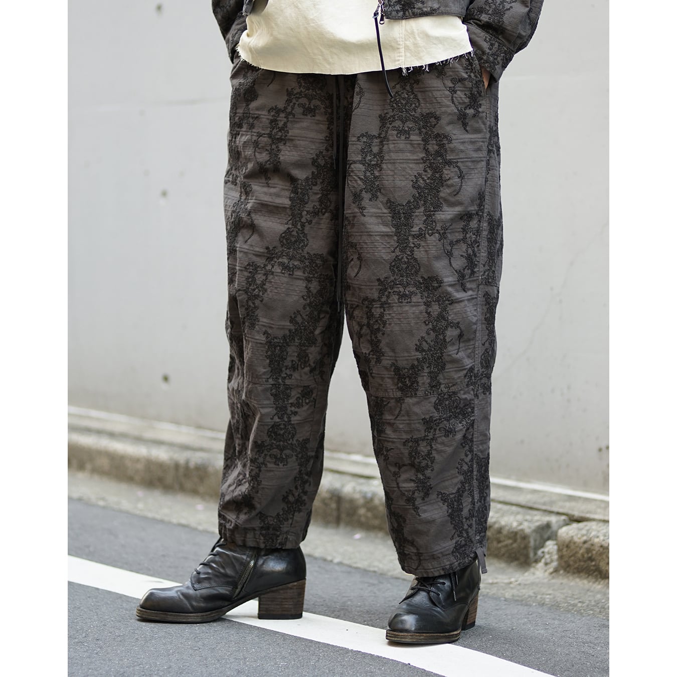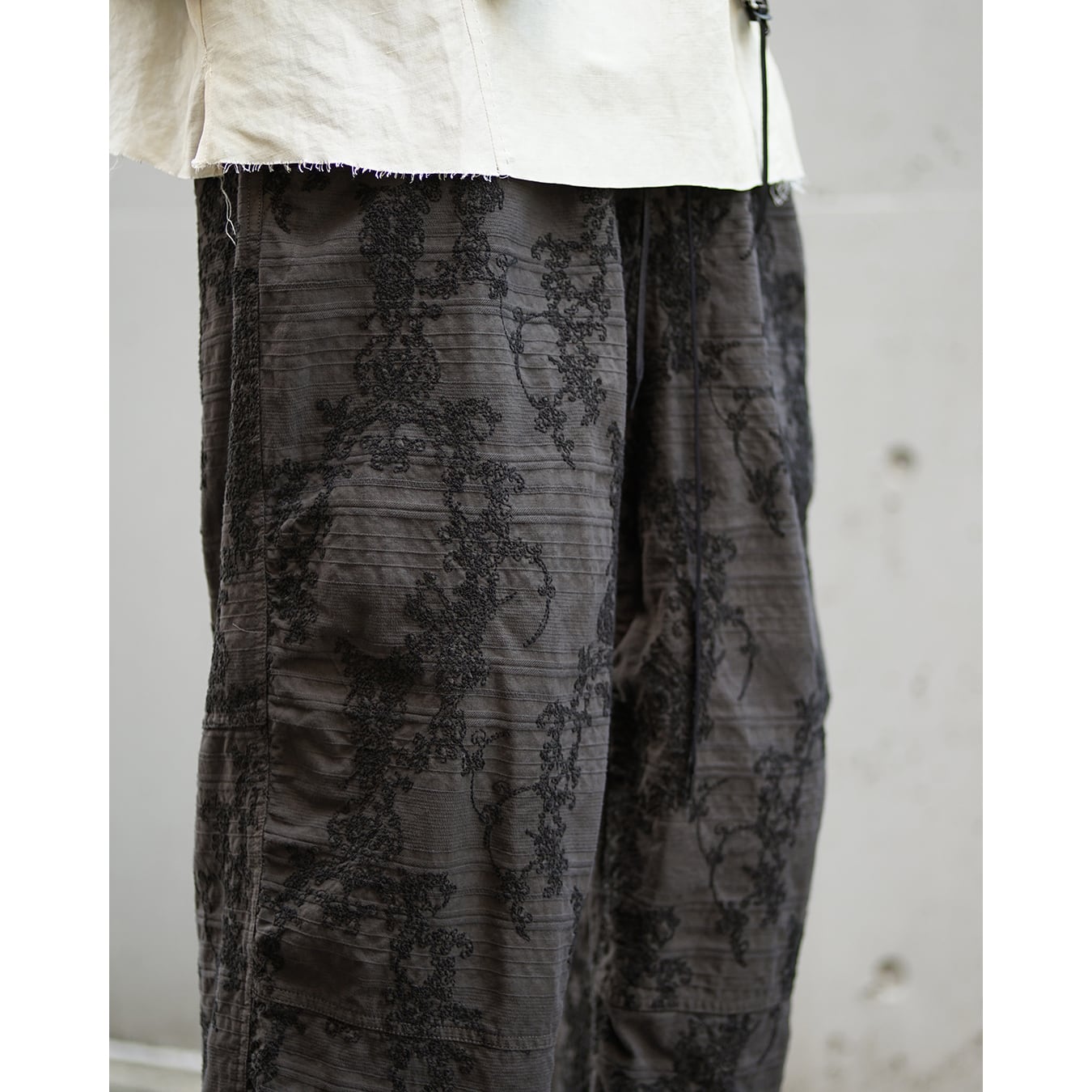 ・総刺繍のテキスタイルが豪華な印象のワイドパンツ