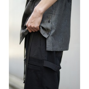 D.HYGEN was established in Osaka in 2015 and started its brand in the 2016-17 AW Collection. In addition to participating in exhibitions in Japan, the 2019 SS also participated in the Paris men's Collection. The leather products and tailored jackets are positioned as signature items of the brand, and the decadent and dignified work using the original developed material is highly evaluated in Japan and overseas. Based on the brand concept of "STRAINISM", this item proposes addictive real clothes with a unique aesthetic sense that disassembles and reconstructs basic styles and sometimes turns negative images into beauty, with the theme of a product that gives a sense of tension and uplifting to the wearer as well as the creator himself. The development of new leather, the detailed and thorough tailoring technique by skilled craftsmen, and the hard and cold look of the original metal fittings made of iron also emphasize tensionism.