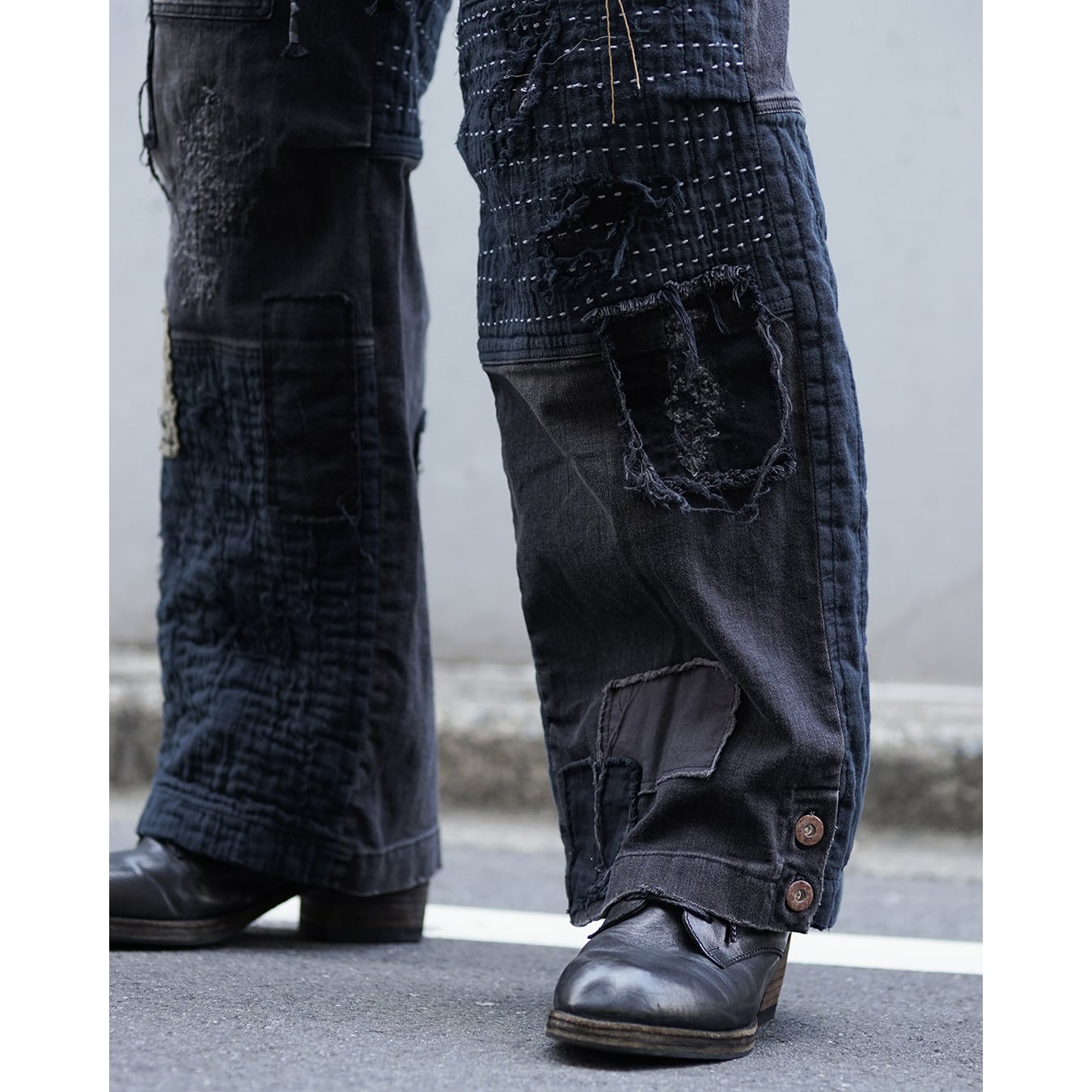 Crust Damage Repair Denim Wide Pants