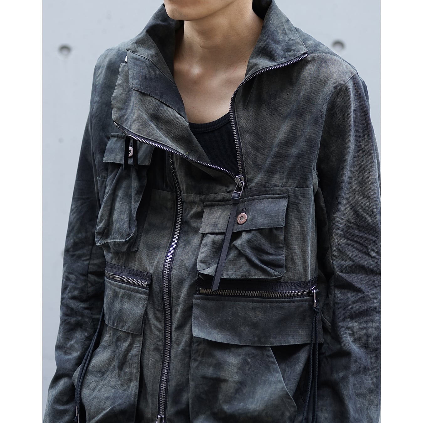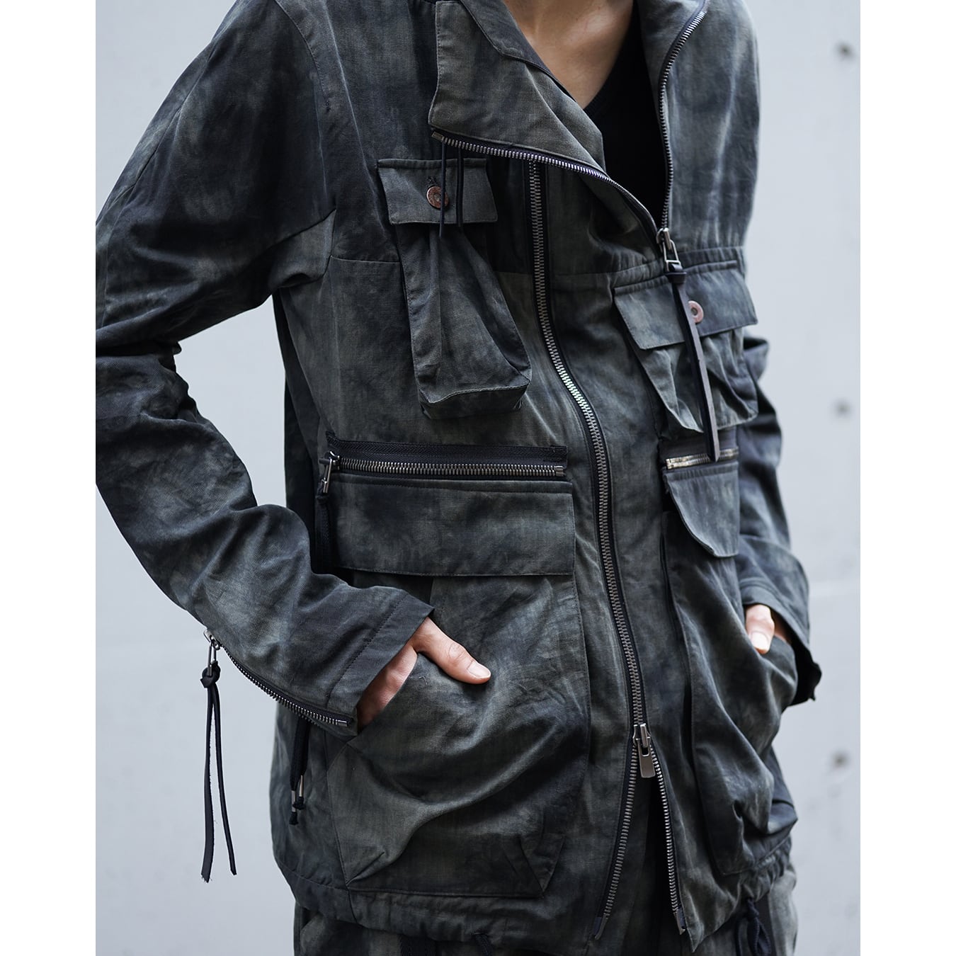D.HYGEN was established in Osaka in 2015 and started its brand in the 2016-17 AW Collection. In addition to participating in exhibitions in Japan, the 2019 SS also participated in the Paris men's Collection. The leather products and tailored jackets are positioned as signature items of the brand, and the decadent and dignified work using the original developed material is highly evaluated in Japan and overseas. Based on the brand concept of "STRAINISM", this item proposes addictive real clothes with a unique aesthetic sense that disassembles and reconstructs basic styles and sometimes turns negative images into beauty, with the theme of a product that gives a sense of tension and uplifting to the wearer as well as the creator himself. The development of new leather, the detailed and thorough tailoring technique by skilled craftsmen, and the hard and cold look of the original metal fittings made of iron also emphasize tensionism.