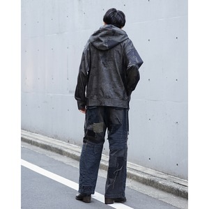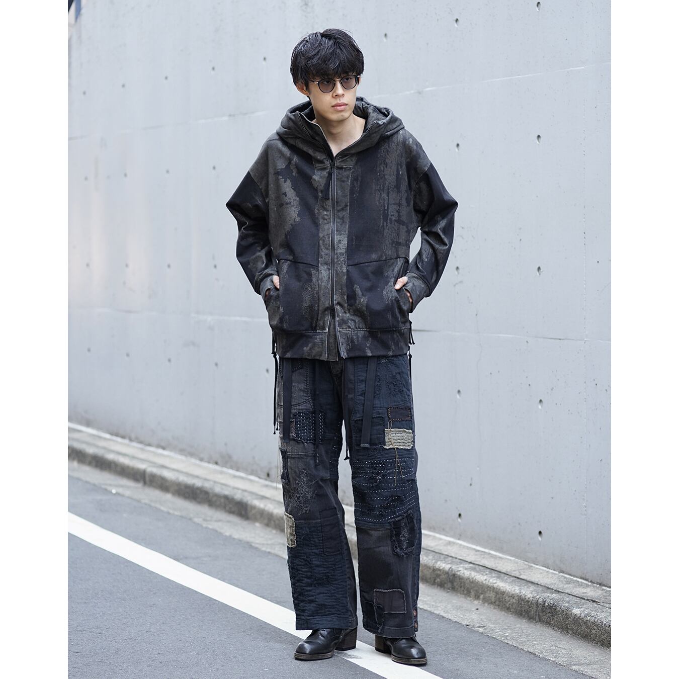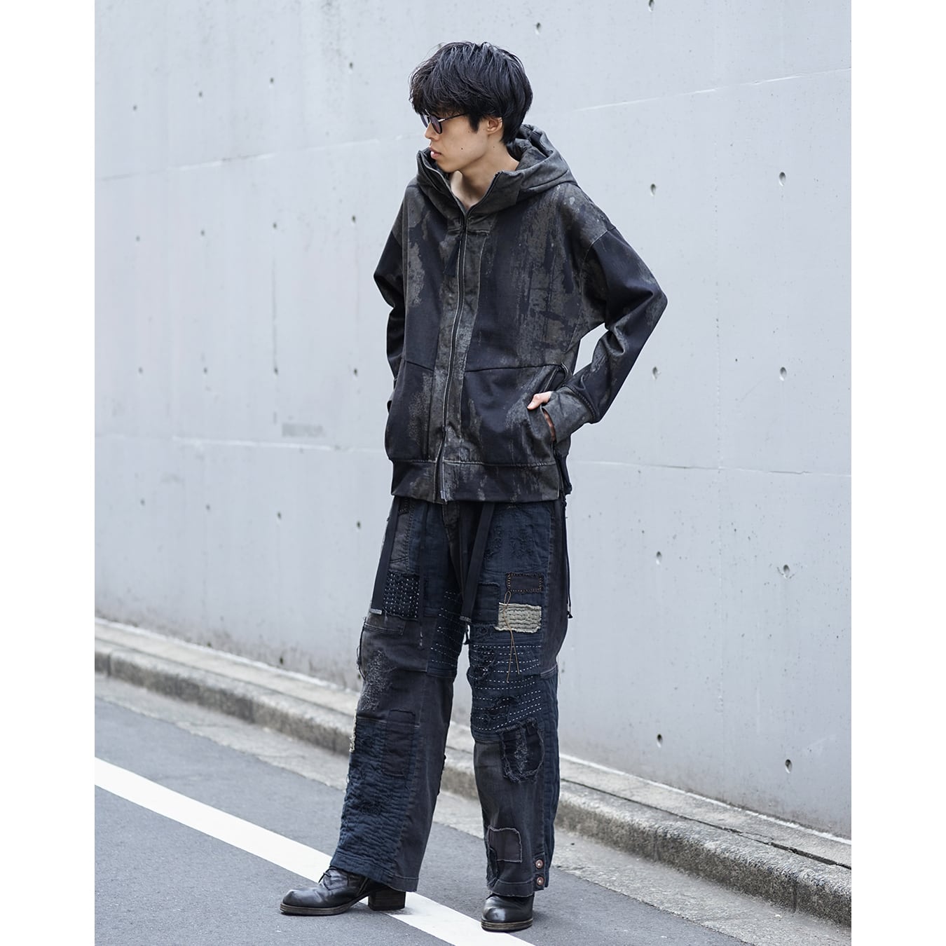 D.HYGEN was established in Osaka in 2015 and started its brand in the 2016-17 AW Collection. In addition to participating in exhibitions in Japan, the 2019 SS also participated in the Paris men's Collection. The leather products and tailored jackets are positioned as signature items of the brand, and the decadent and dignified work using the original developed material is highly evaluated in Japan and overseas. Based on the brand concept of "STRAINISM", this item proposes addictive real clothes with a unique aesthetic sense that disassembles and reconstructs basic styles and sometimes turns negative images into beauty, with the theme of a product that gives a sense of tension and uplifting to the wearer as well as the creator himself. The development of new leather, the detailed and thorough tailoring technique by skilled craftsmen, and the hard and cold look of the original metal fittings made of iron also emphasize tensionism.