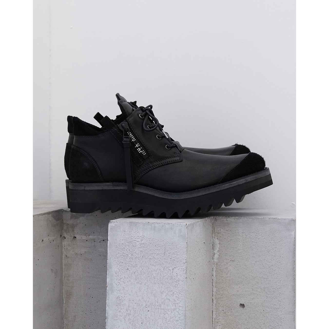 レザー、テーラードをシグネチャーとし革の開発技術、テーラー技術の繊細で徹底した作りこみ、独創的なパターンワーク、独自の素材開発、加工技術からも緊張主義を主張します。