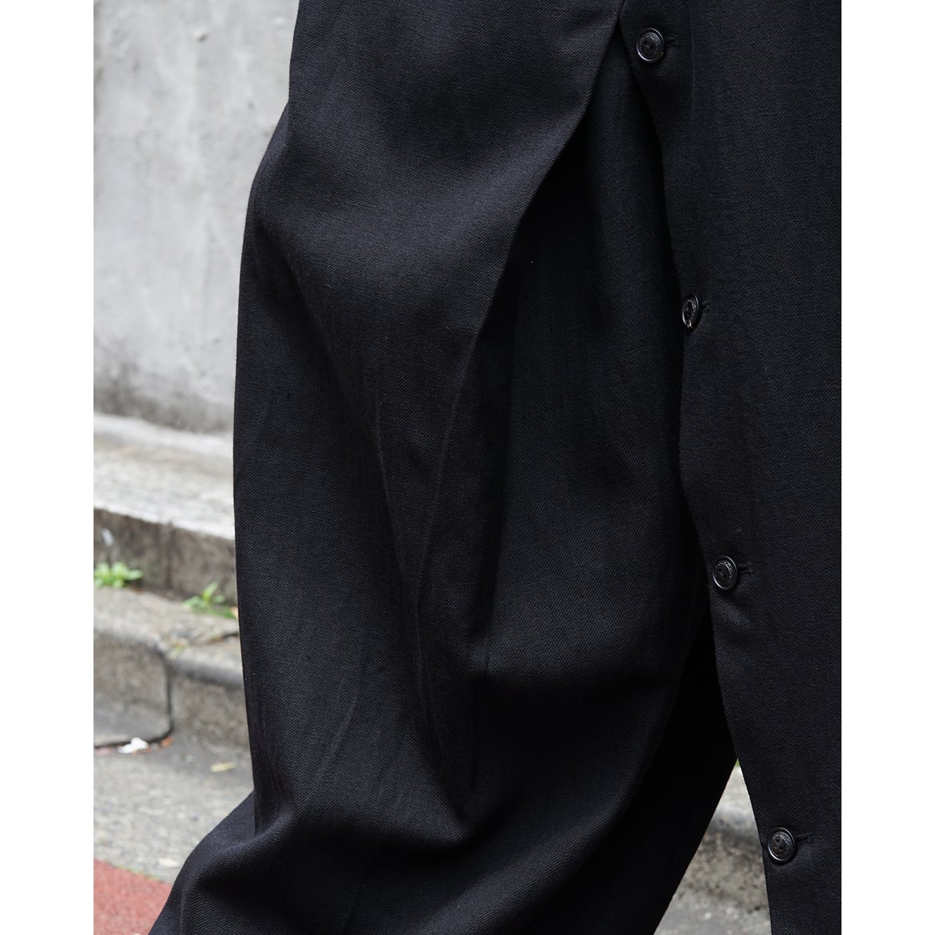 We offerings underscore a strong connection with traditional origins while exploring innovative sewing and construction techniques. Featuring deconstructed tailoring, lightweight linen jackets, relaxed-fit trousers, elongated shirts, and minimalist t-shirts are rendered in thoughtfully-sourced textiles, subdued earthy tones, and singular finishings.