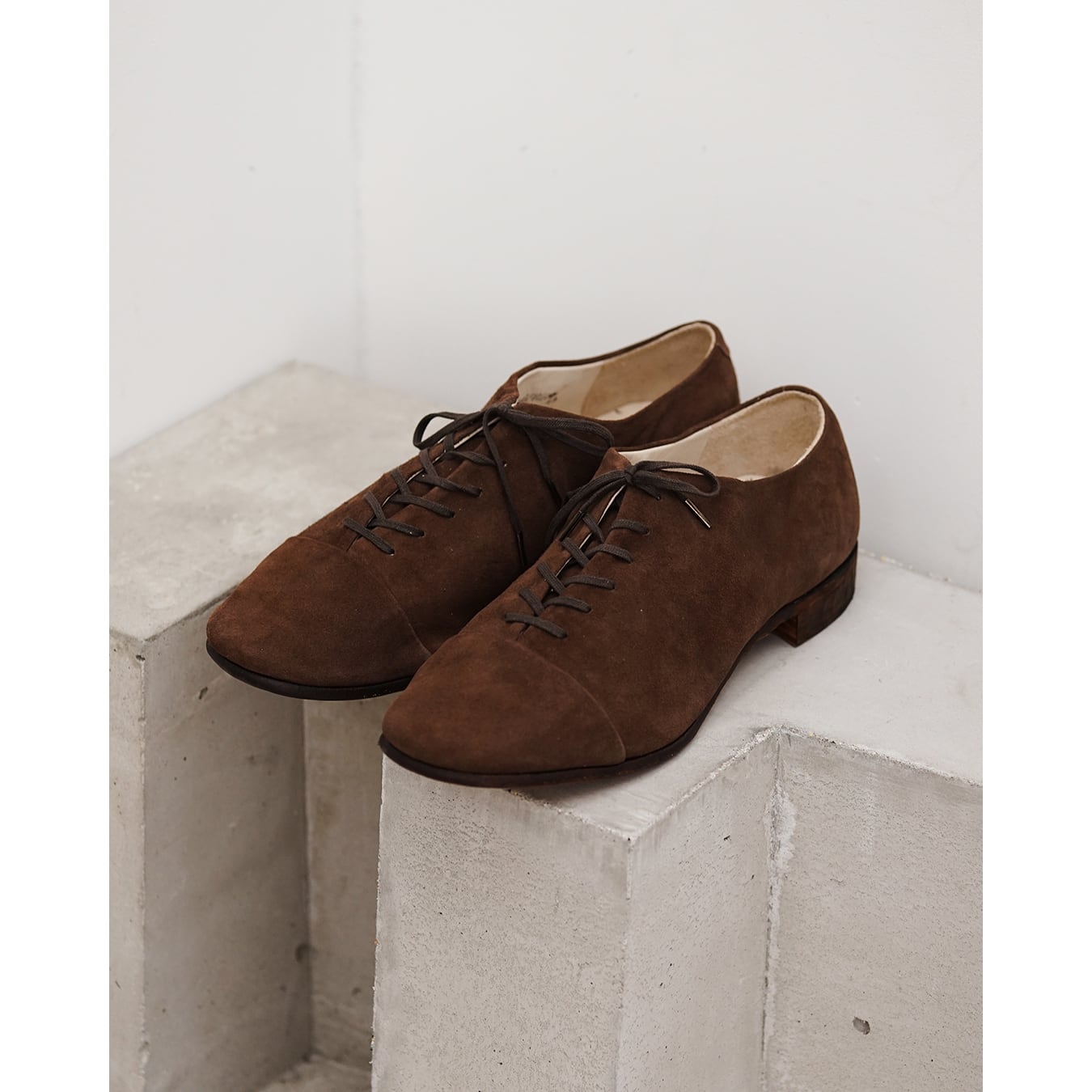 ストレートチップと華奢なシューレースによるエレガントかつミニマルなデザイン。