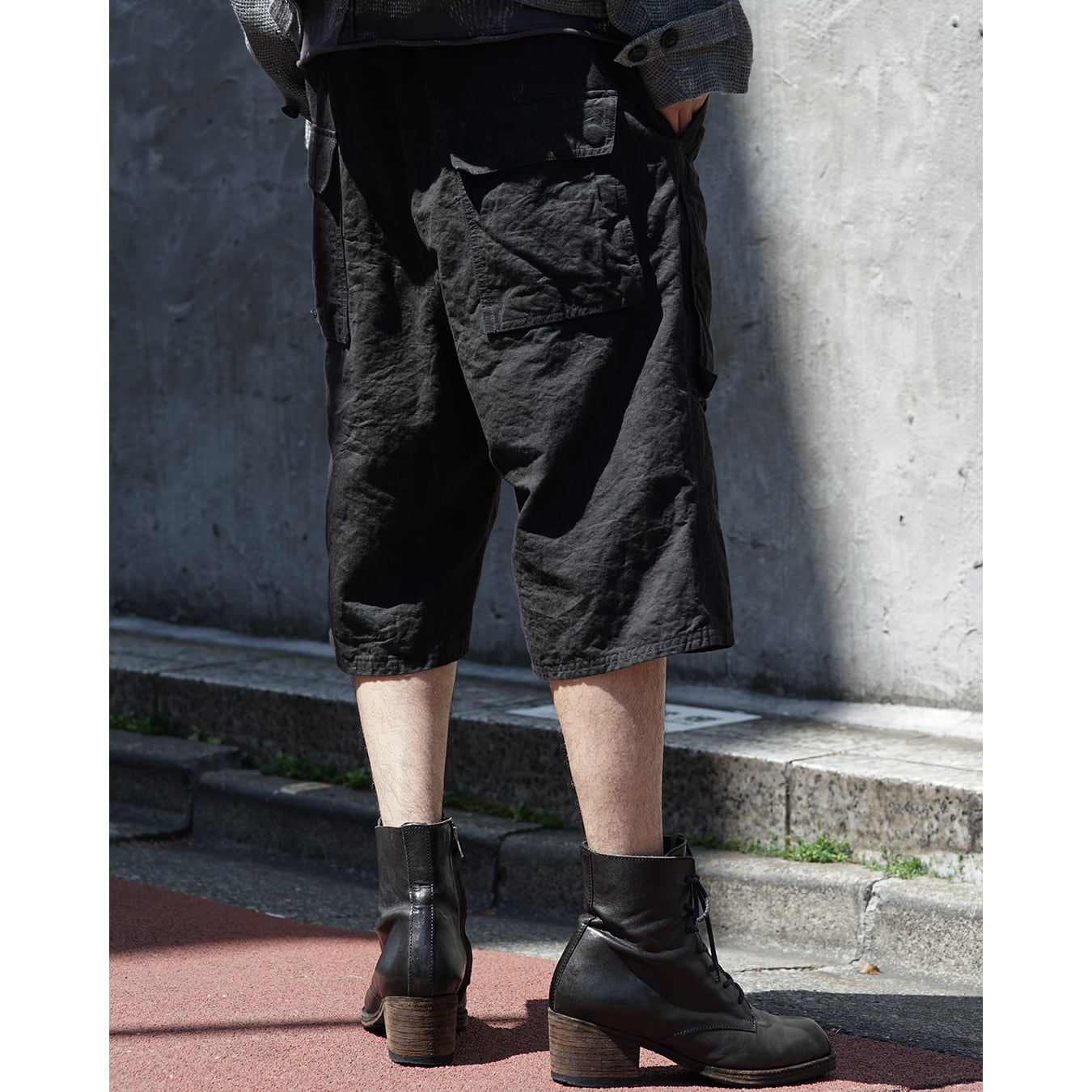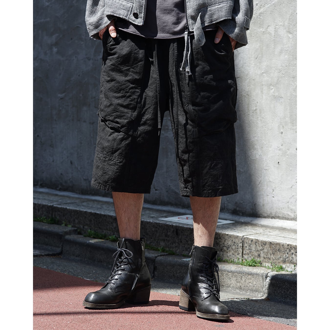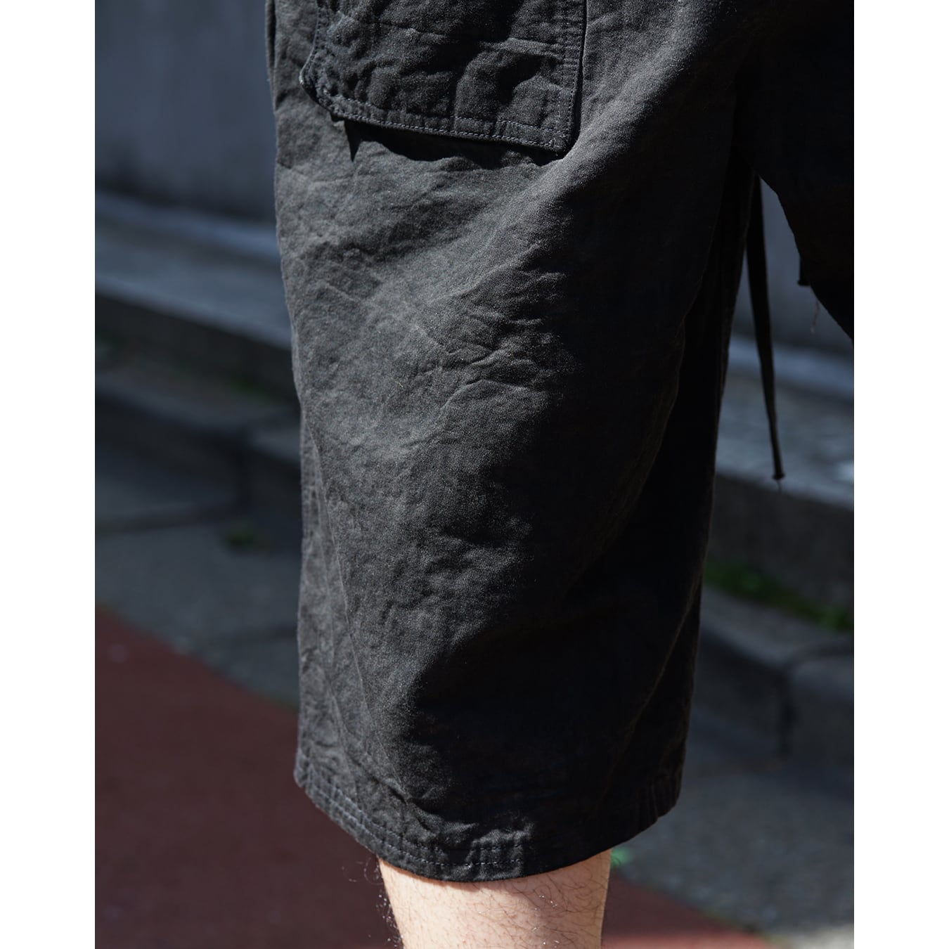 ヘビーウェイトのコットンリネンキャンバス生地を使用したショーツ。