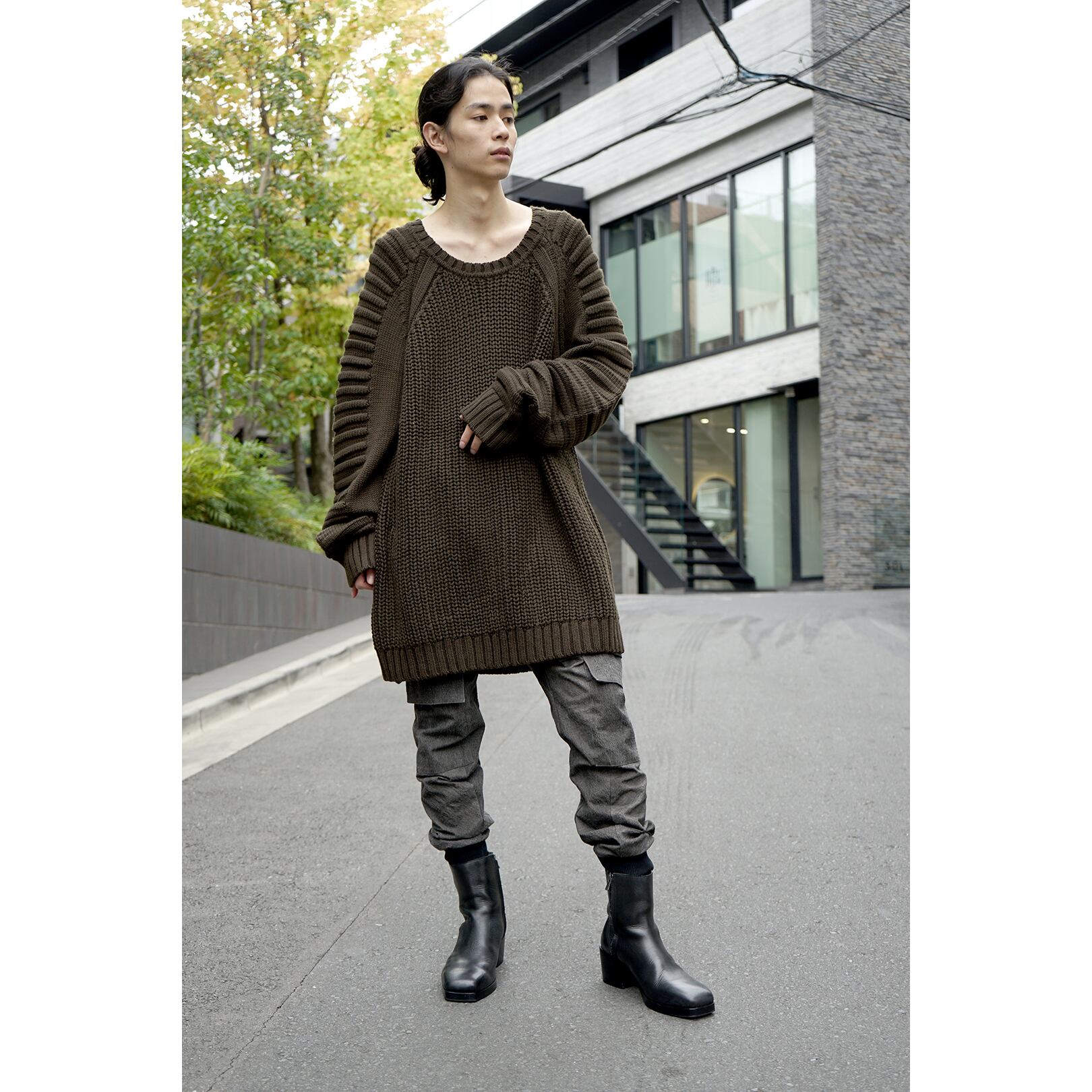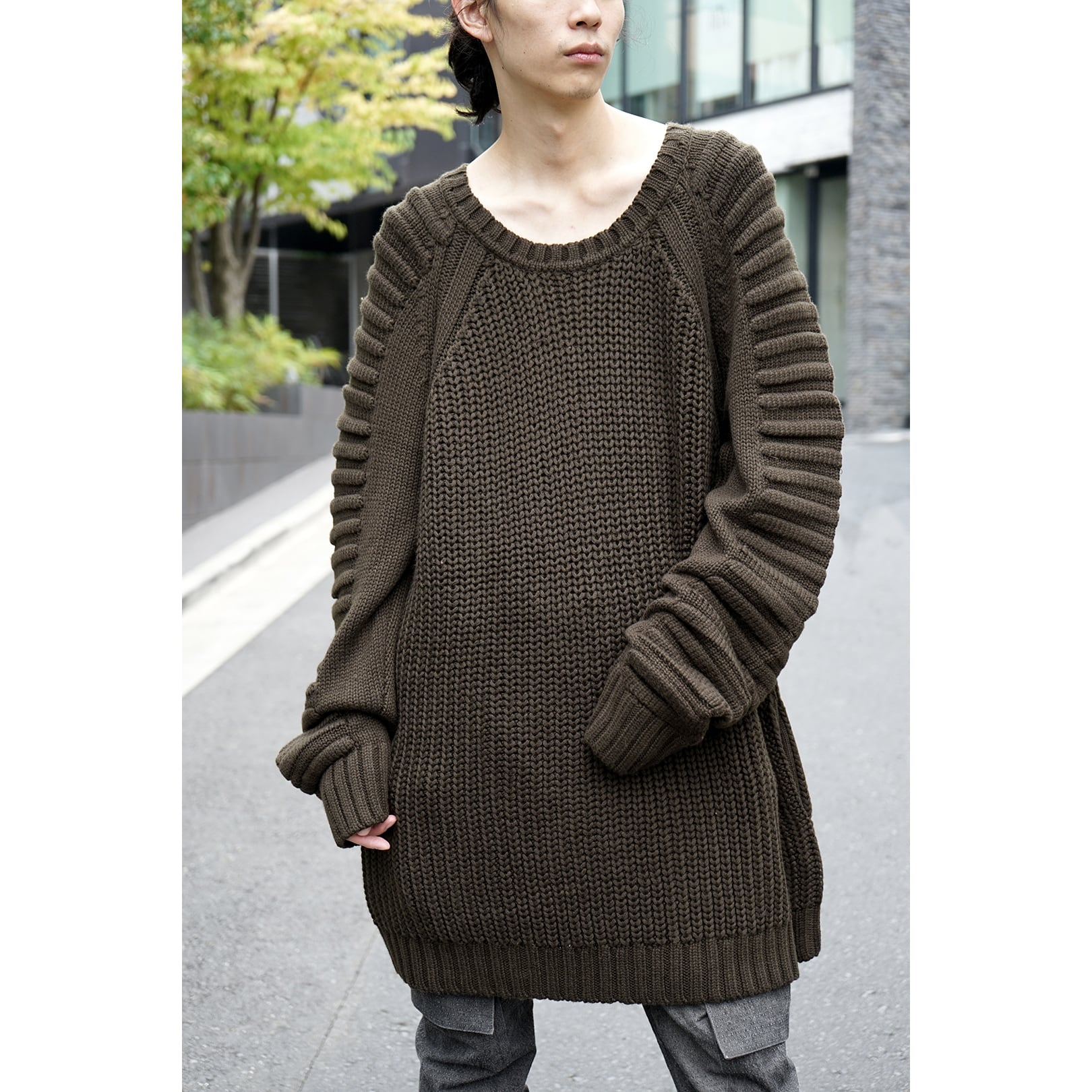 [A.F ARTEFACT] (エーエフアーティファクト) ag-6003 Low Gauge Raglan Knit Pullover (khaki)