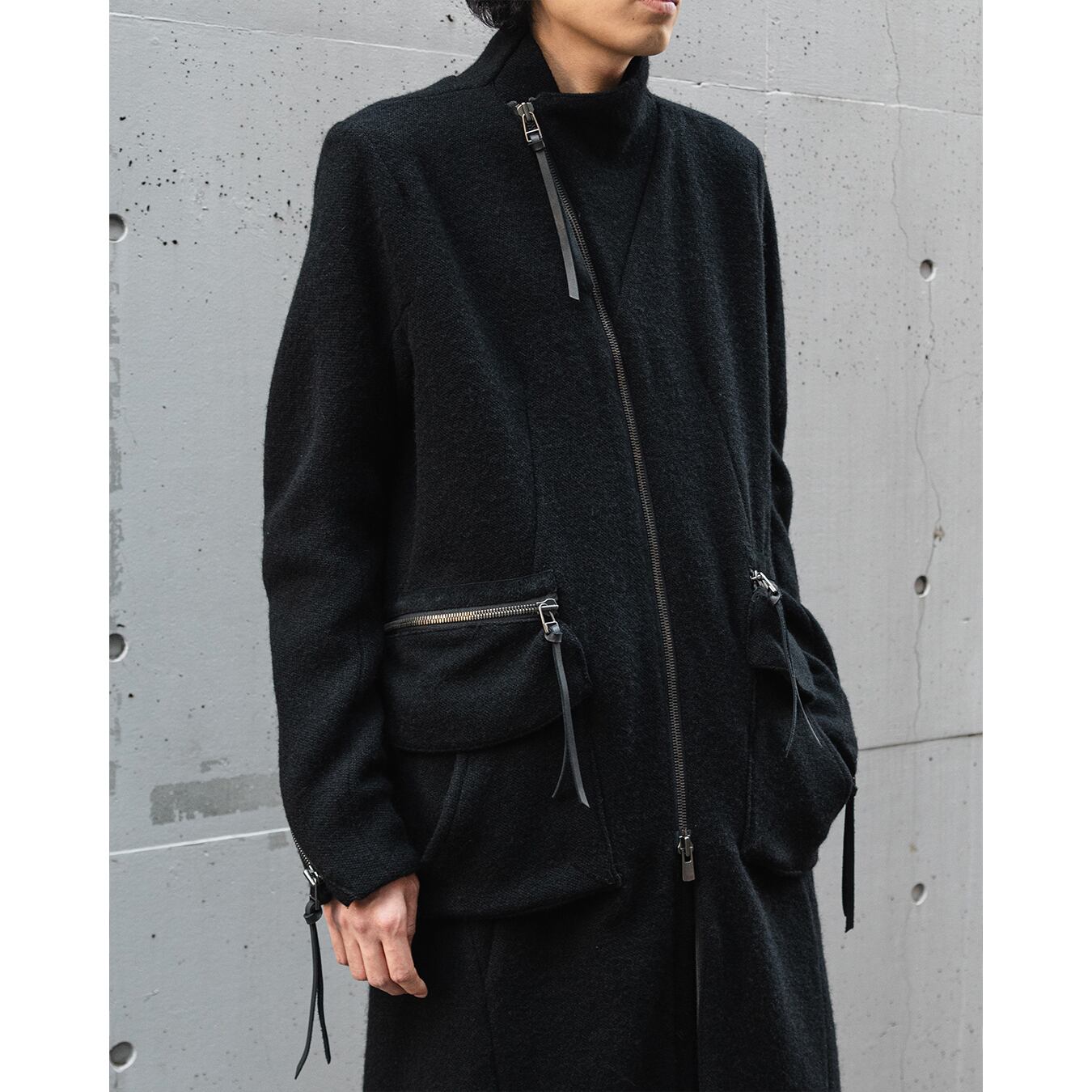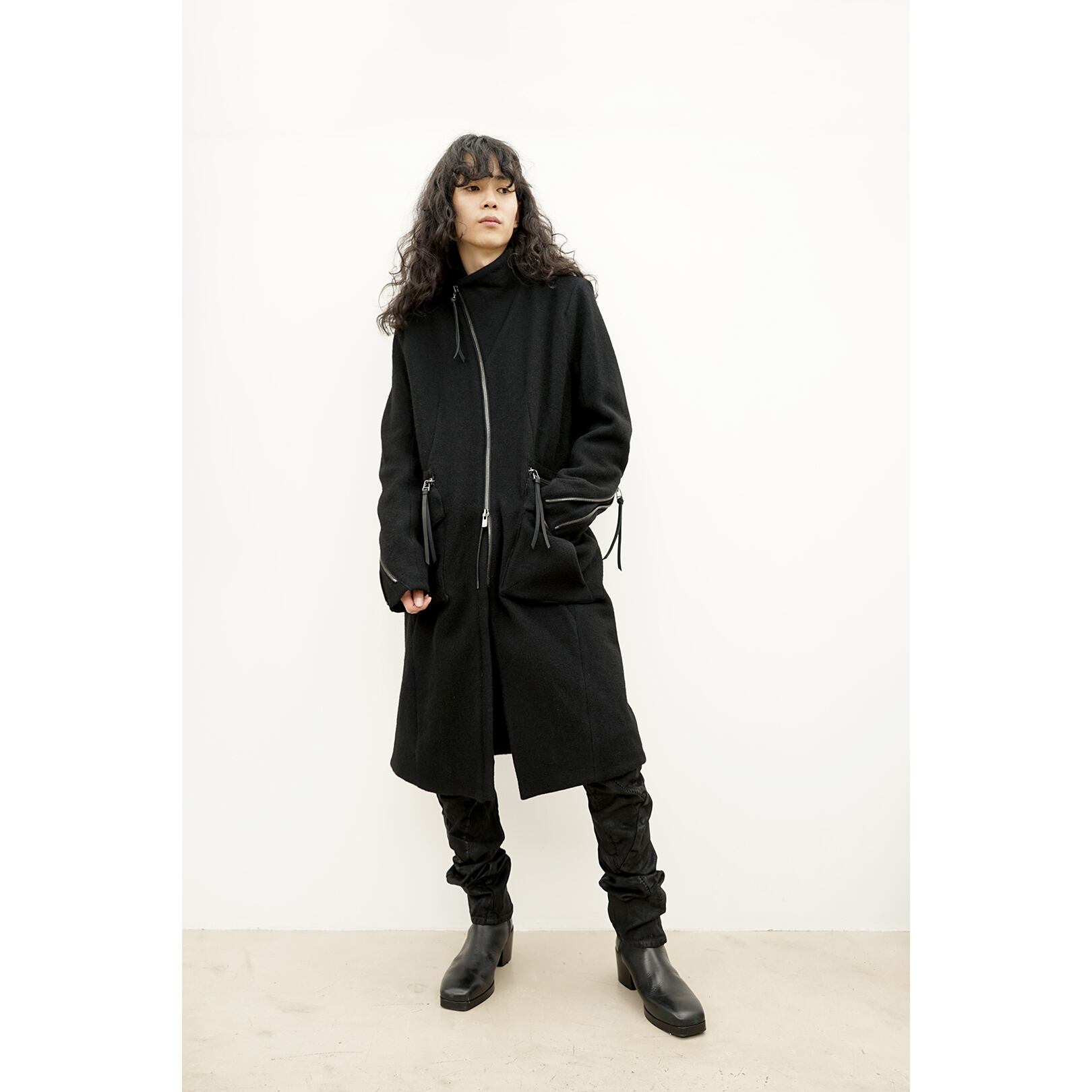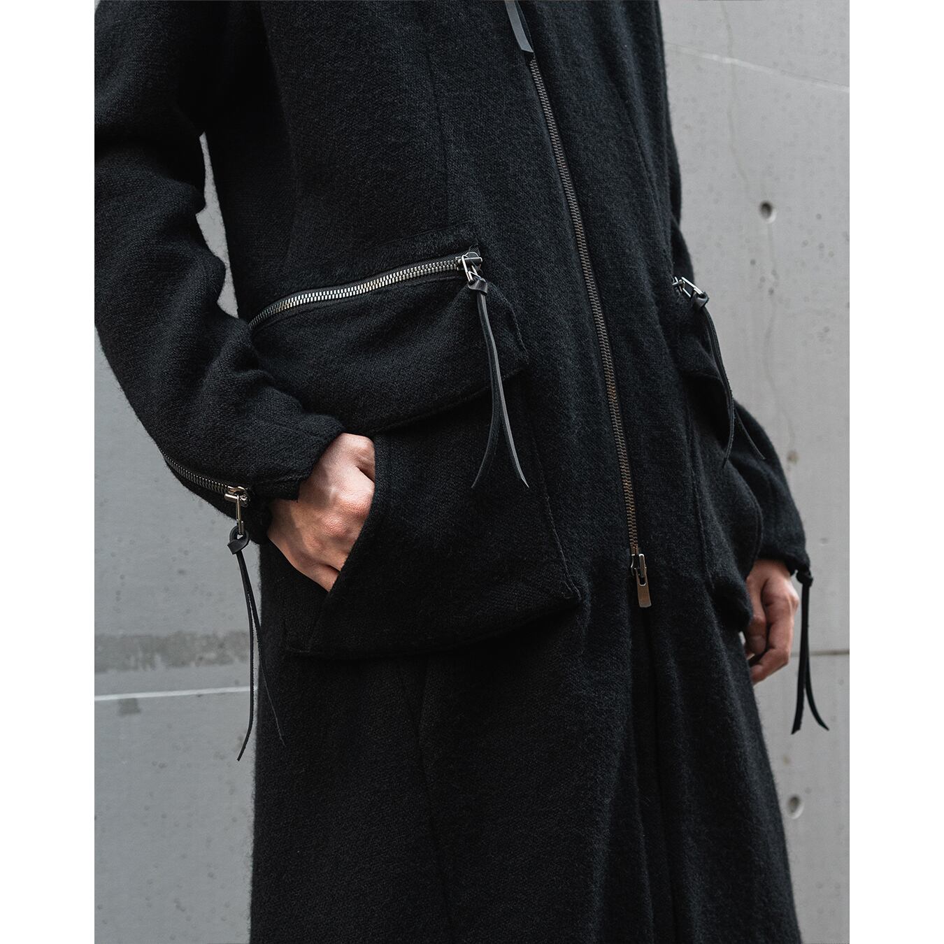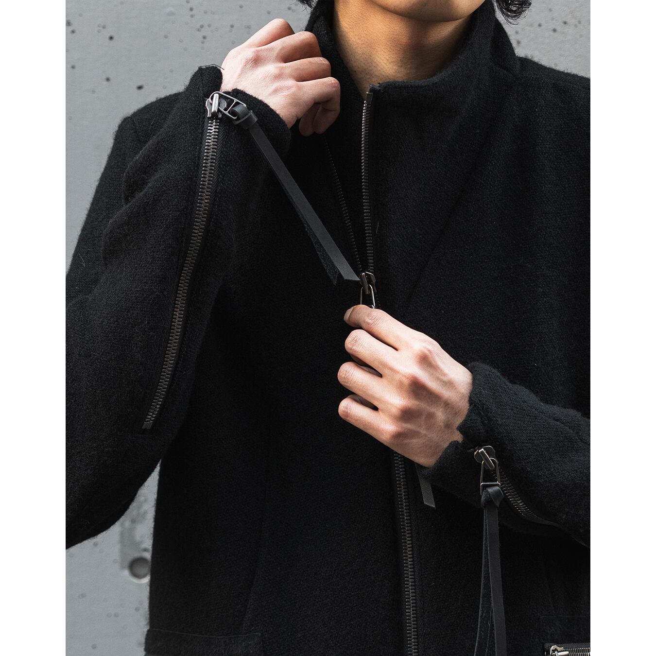 D.HYGEN was established in Osaka in 2015 and started its brand in the 2016-17 AW Collection. In addition to participating in exhibitions in Japan, the 2019 SS also participated in the Paris men's Collection. The leather products and tailored jackets are positioned as signature items of the brand, and the decadent and dignified work using the original developed material is highly evaluated in Japan and overseas. Based on the brand concept of "STRAINISM", this item proposes addictive real clothes with a unique aesthetic sense that disassembles and reconstructs basic styles and sometimes turns negative images into beauty, with the theme of a product that gives a sense of tension and uplifting to the wearer as well as the creator himself. The development of new leather, the detailed and thorough tailoring technique by skilled craftsmen, and the hard and cold look of the original metal fittings made of iron also emphasize tensionism.