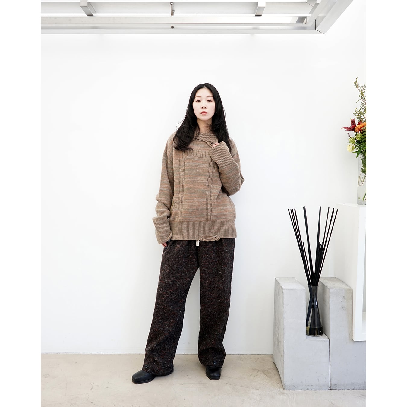 [KLASICA] (クラシカ) 23C-TRK-084 "CAVE-BORO" Tech Destroyed Turtle Neck (MOSS)