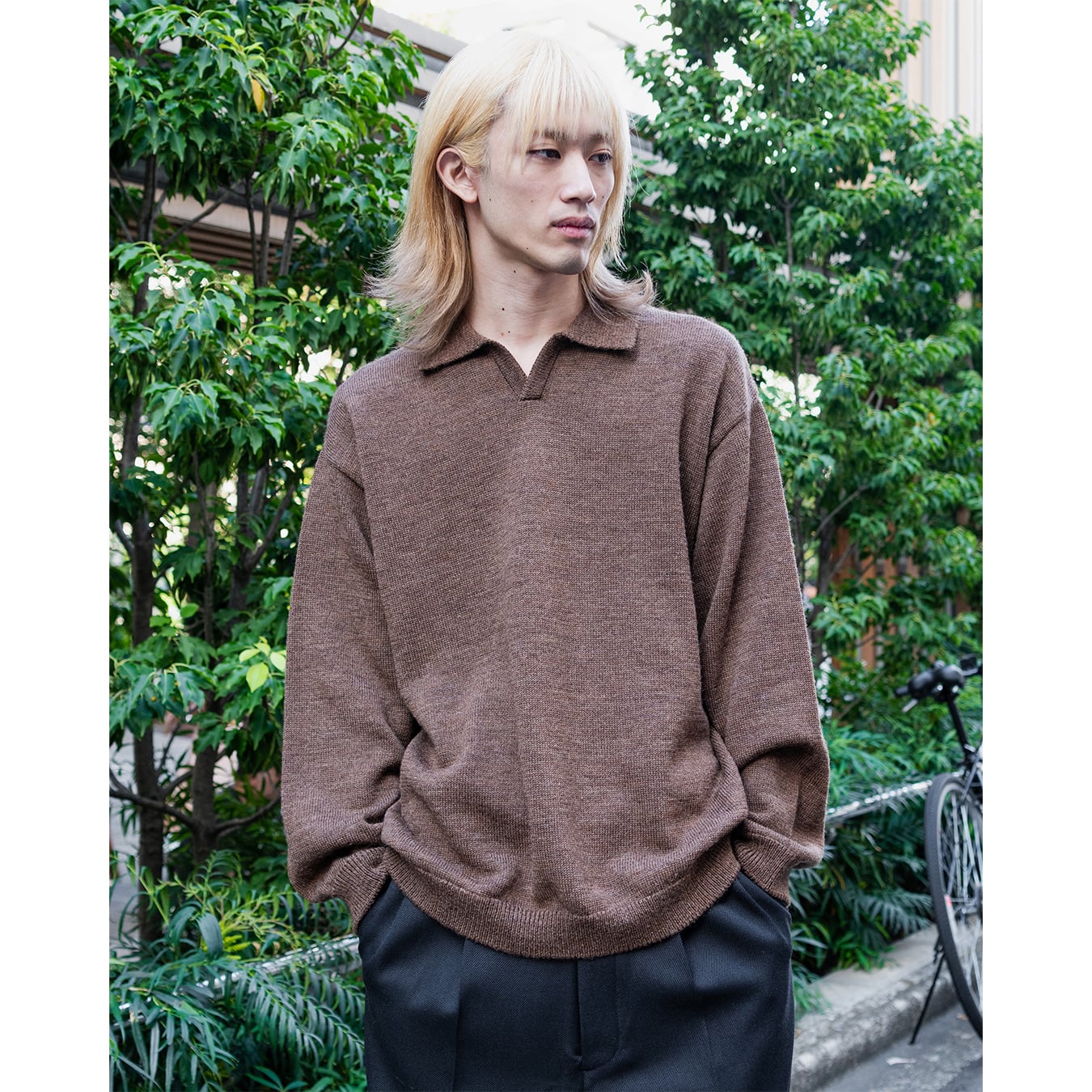 [Blanc YM] (ブランワイエム) BL-23A-WKSS Wool Knit Skipper Shirt (Brown)
