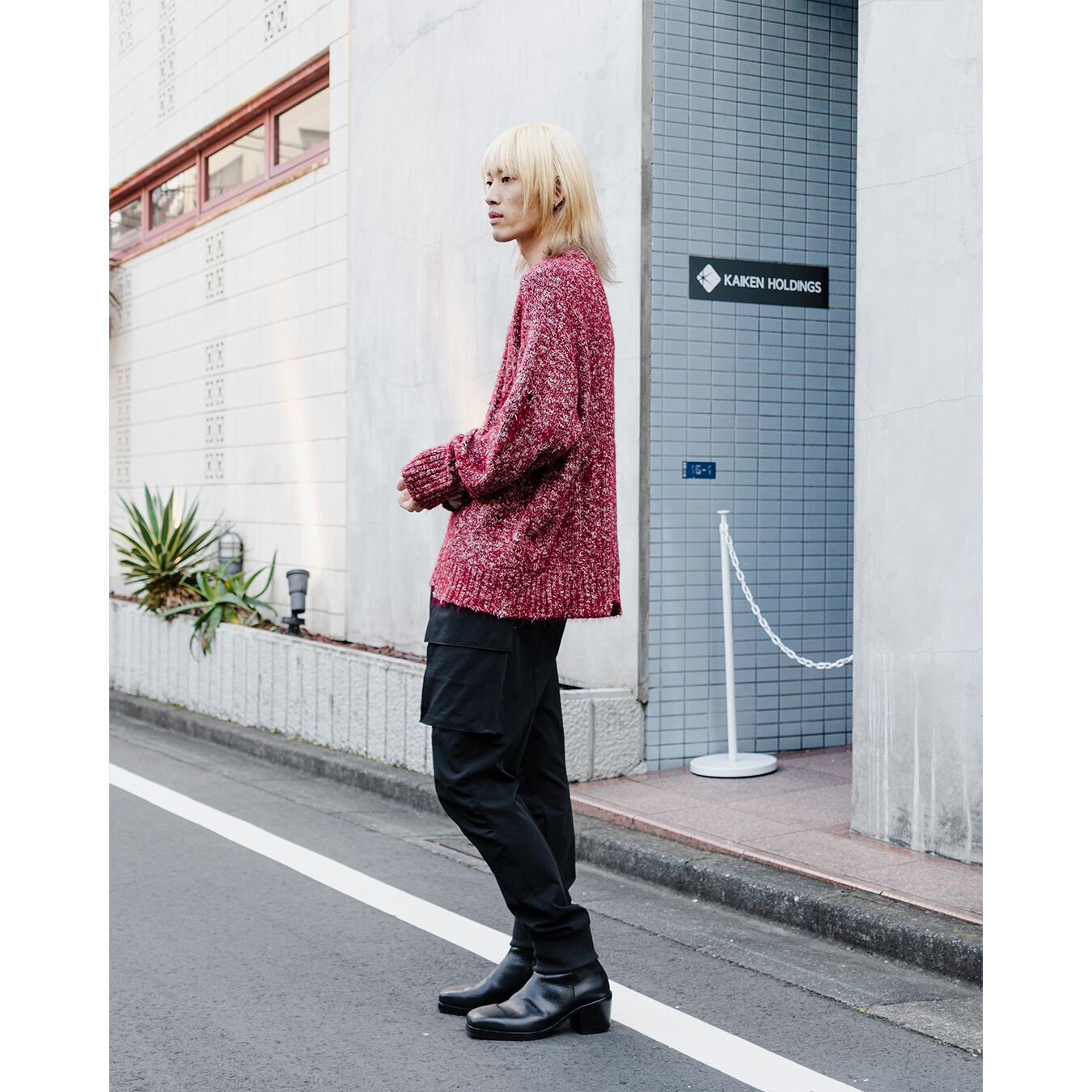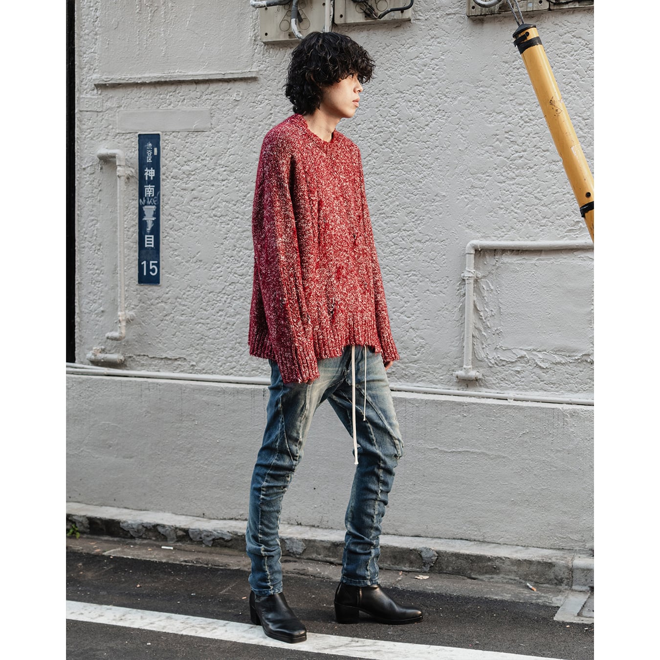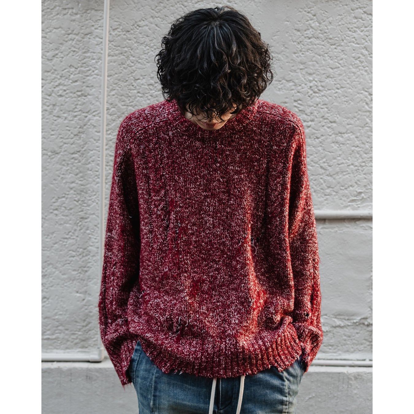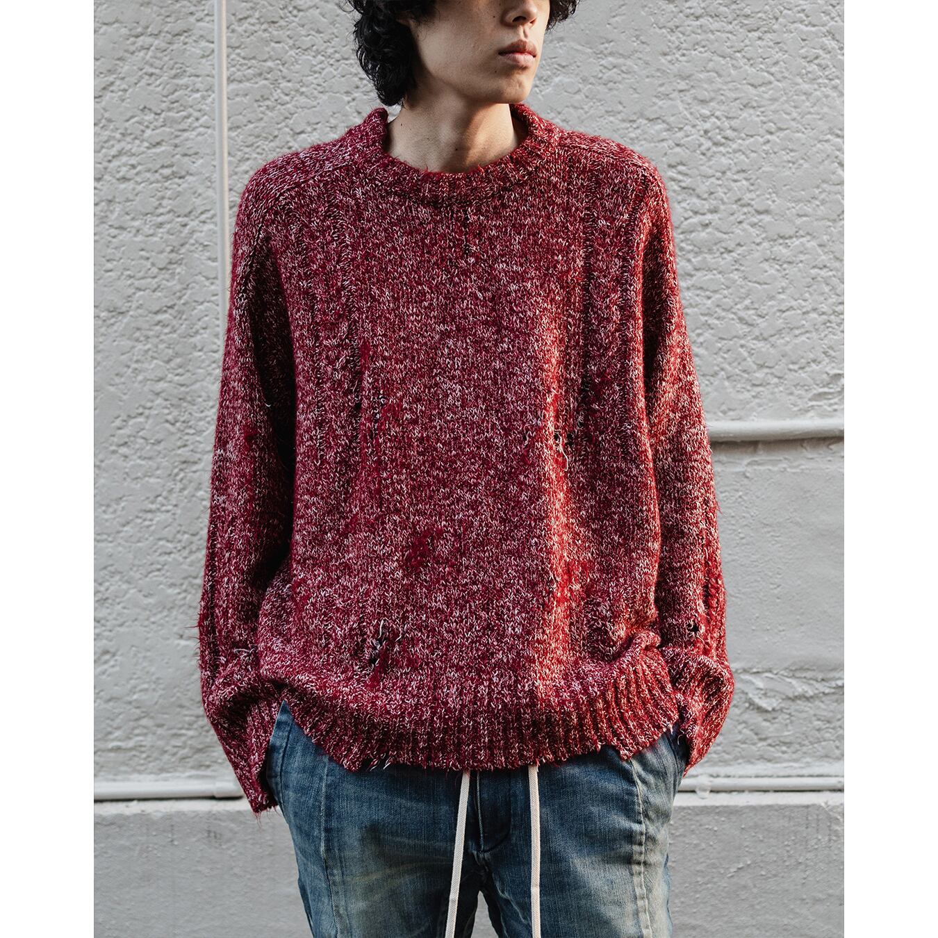 [A.F ARTEFACT] (エーエフアーティファクト) ag-8013 Damage Knit Top (RED MIX)