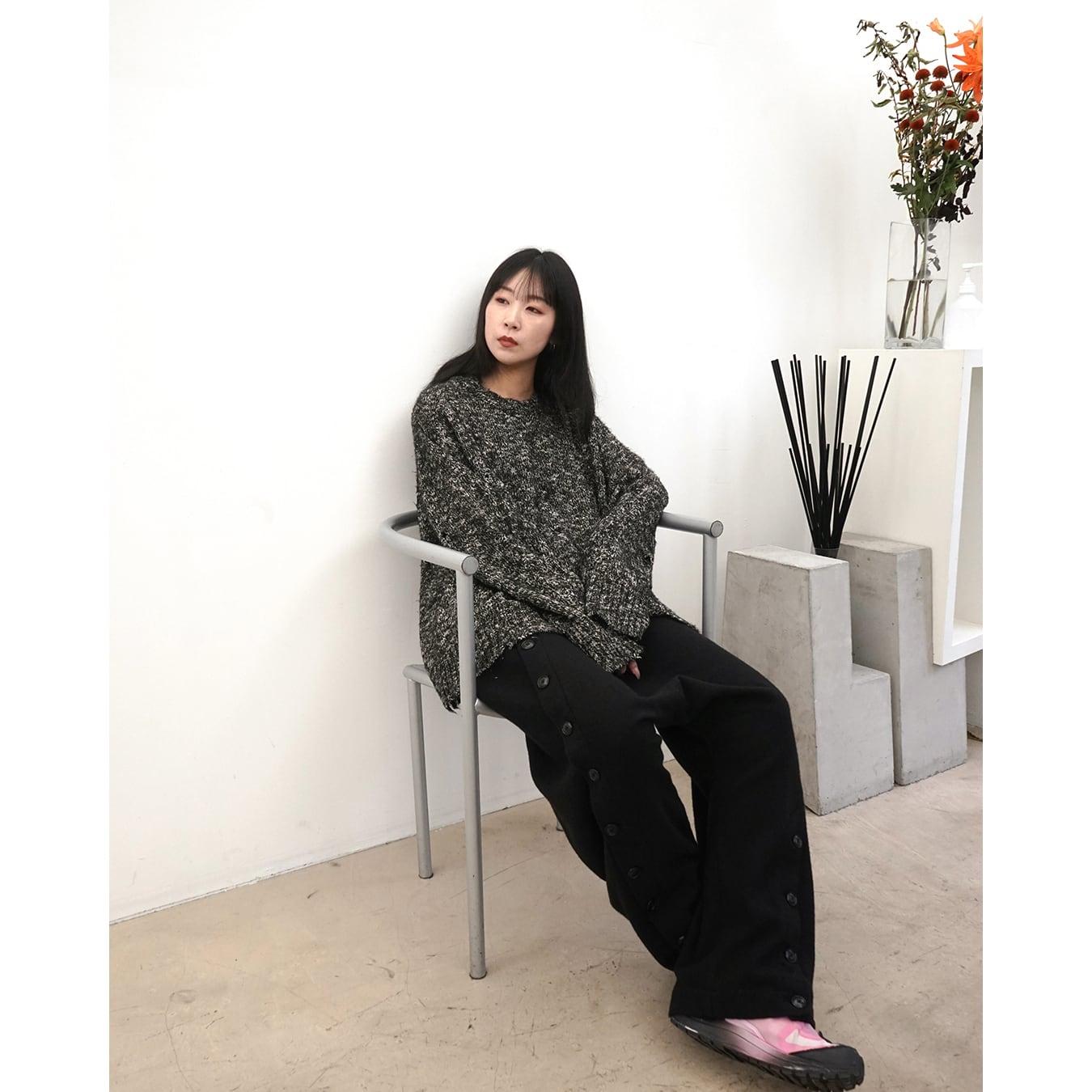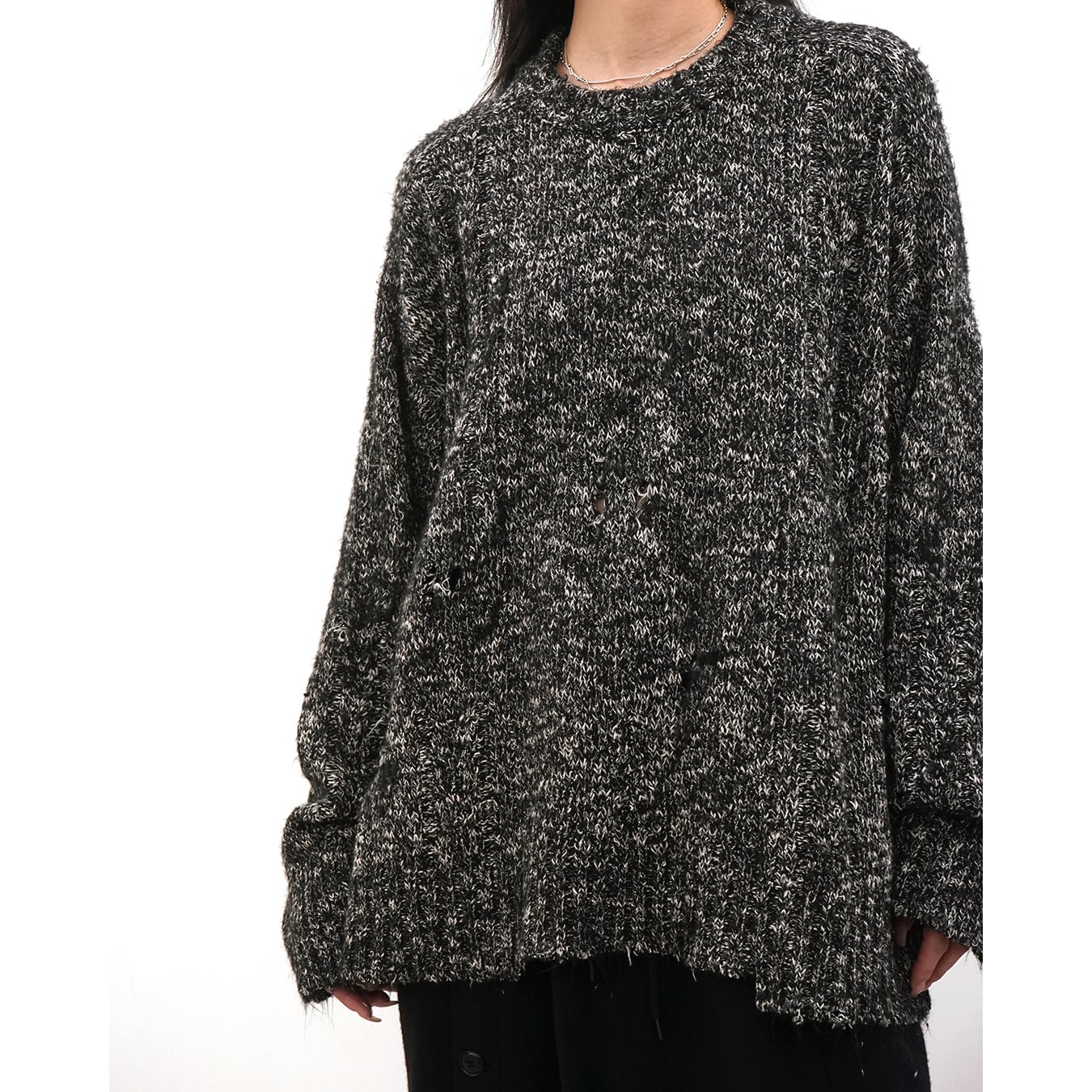 [A.F ARTEFACT] (エーエフアーティファクト) ag-8013 Damage Knit Top (BLACK MIX)