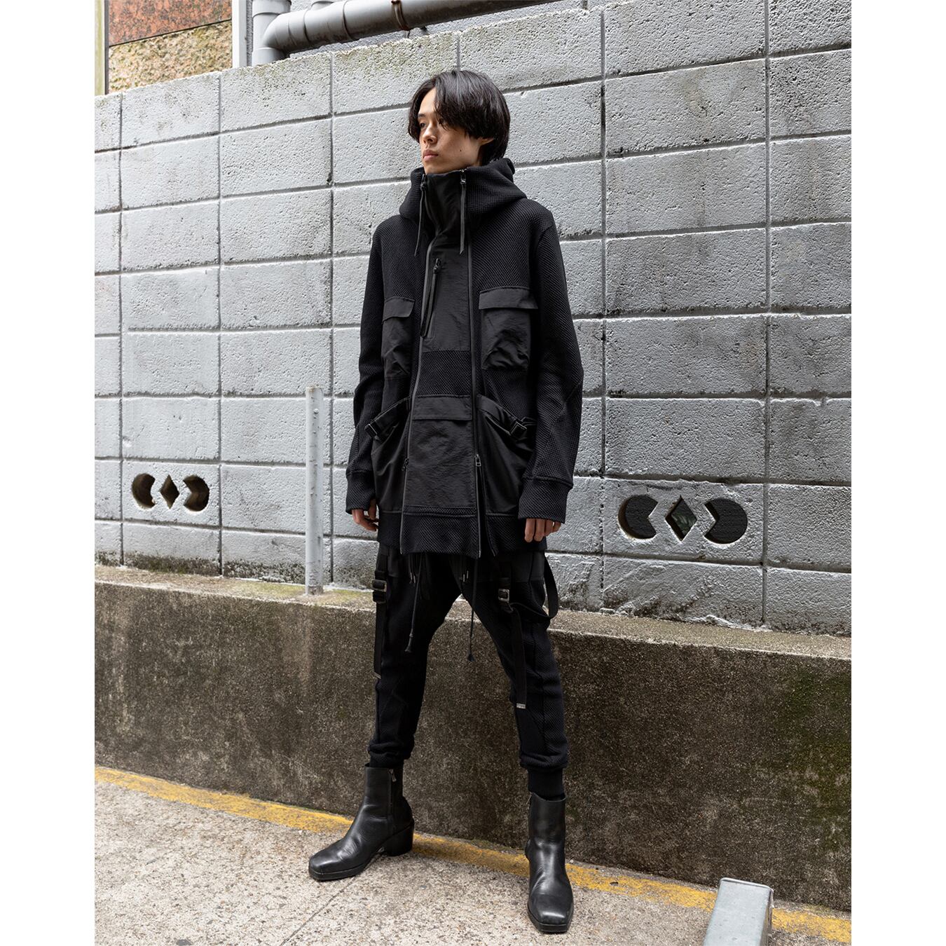 D.HYGEN was established in Osaka in 2015 and started its brand in the 2016-17 AW Collection. In addition to participating in exhibitions in Japan, the 2019 SS also participated in the Paris men's Collection. The leather products and tailored jackets are positioned as signature items of the brand, and the decadent and dignified work using the original developed material is highly evaluated in Japan and overseas. Based on the brand concept of "STRAINISM", this item proposes addictive real clothes with a unique aesthetic sense that disassembles and reconstructs basic styles and sometimes turns negative images into beauty, with the theme of a product that gives a sense of tension and uplifting to the wearer as well as the creator himself. The development of new leather, the detailed and thorough tailoring technique by skilled craftsmen, and the hard and cold look of the original metal fittings made of iron also emphasize tensionism.
