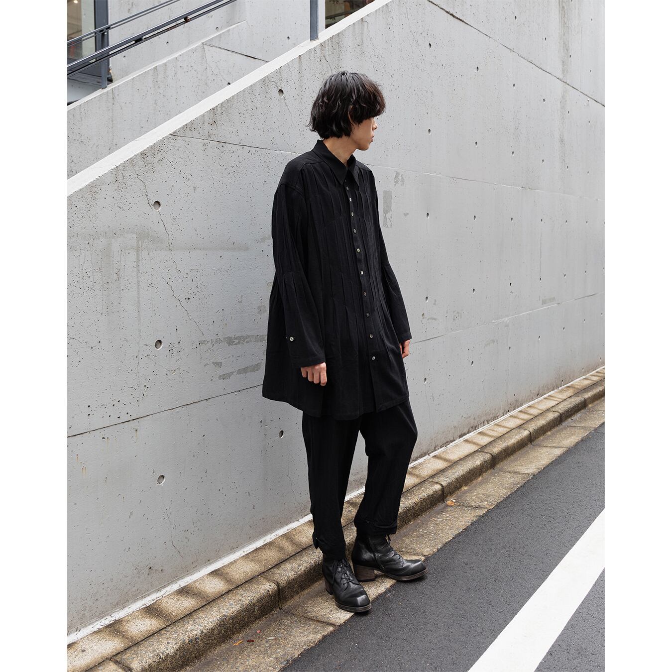 [ Professor.E ](プロフェッサーイー) 24SS-PE-LSH-04 PLEATED LONG SHIRT (black)